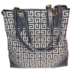 Authentic Givenchy Canvas & Leather Tote – Geometric Print Adjustable Straps