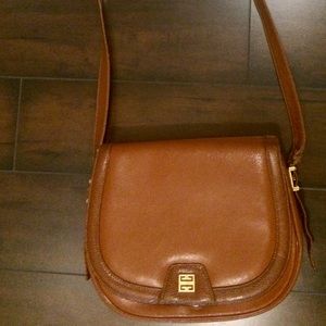 Vintage Givenchy Crossbody Purse. A dark Tan. Has visible wear & tear. Strap & the side straps are in need of repair/replacement. Please see pictures before purchasing as they show the overall condition.