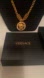 Elegant Versace gold necklace featuring a striking medallion design. Perfect for adding a touch of luxury to any outfit.brand new never used with the box and COA final sale no cancellation no return thank you.