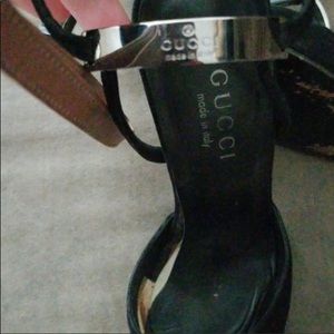 Amazing vintage black suede and leather Ankle Gucci Logo Strap Stiletto sandals in great condition. Little wear showing on bottom of shoe but no issues . Classic staple of the Fashionista with taste! Will trade for Chanel, Gucci or LV only.