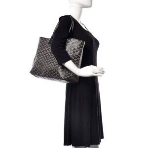 Authentic Goyard Goyardine Saint Louis PM Black Shoulder Tote Bag & Pouch Wallet