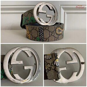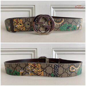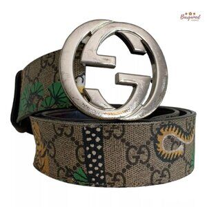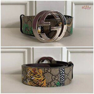 Authentic Gucci Beige GG Supreme Monogram Bengal Interlocking G Buckle 95/38