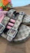 Elegant Gucci slides with signature monogram. Features dual adjustable buckles. Ideal for everyday comfort. It has the normal signs of use on insoles and bottom soles but still has a lot of life left. Size 7 on men’s and size 9 women’s.