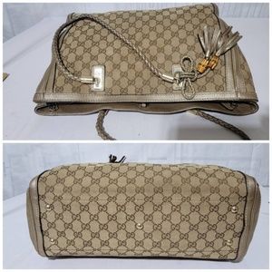 Authentic Gucci Bella Original Canvas GG Tote Bag Beige/Ebony