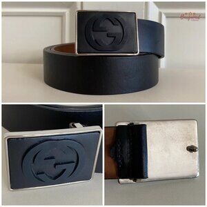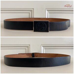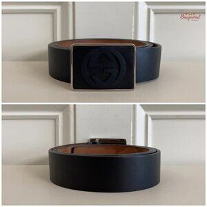 Authentic Gucci Black Calfskin Leather Interlocking G Plaque Buckle Belt 105/42