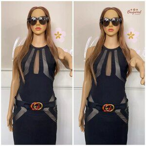 Authentic Gucci Black Calfskin Leather Tortoise Gold Interlocking G Belt 80/32