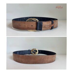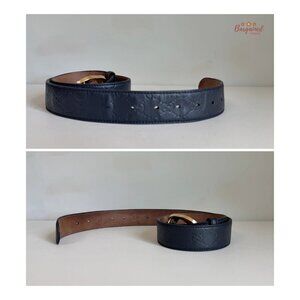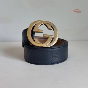 Authentic Gucci Black Guccissima Leather Gold Interlocking G Buckle Belt 85/34