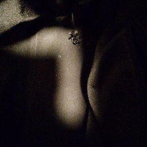 See photos. Only flaw is a small spot of clear nail polish in the bottom of the interior lining (see photo). Otherwise, excellent condition.