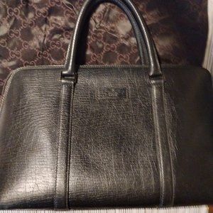 Authentic Gucci Black Leather Zipper Handbag