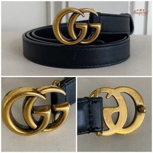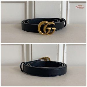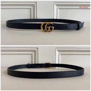 Authentic Gucci Black Smooth Leather Slim Signature Double G Buckle Belt 85/34