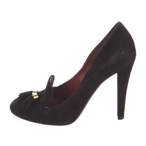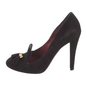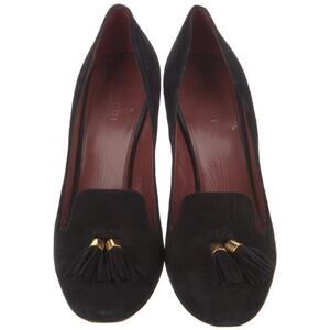 Authentic Gucci Black Suede Mischa Tassel Moccasin Heeled Pumps Size 8.5