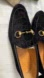 Elegant black velvet loafers by Gucci. Features signature gold hardware. Perfect for sophisticated style. Like new only worn 3 times. Open to offers.