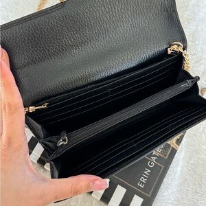 Comes with a non-branded chain and an insert to be worn as a crossbody, wallet or clutch.
