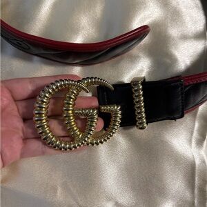 Authentic Gucci Black and Red Belt with Gold GG Buckle