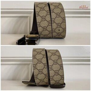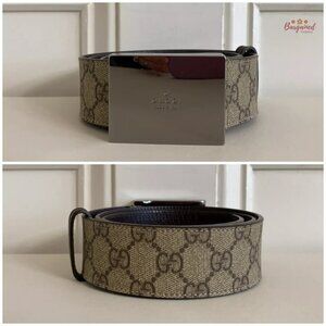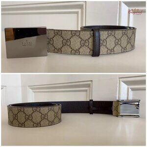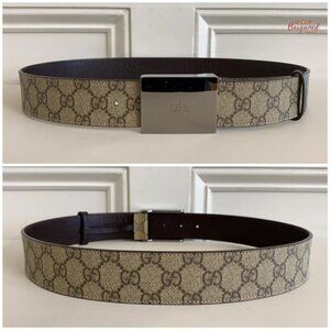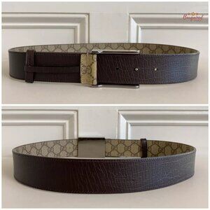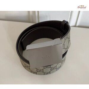 Authentic Gucci Brown GG Plus Monogram Canvas Silver Square Buckle Belt 85/34