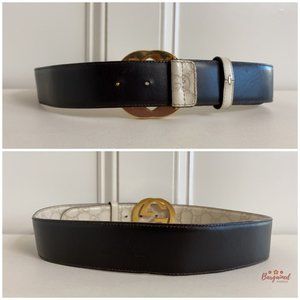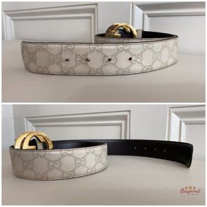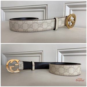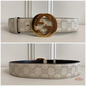Authentic Gucci Cream Guccissima Leather Gold Interlocking G Buckle Belt 80/32