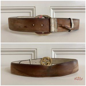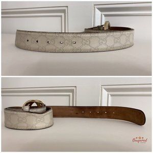 Authentic Gucci Cream Guccissima Leather Gold Interlocking G Buckle Belt 85/34