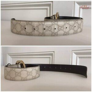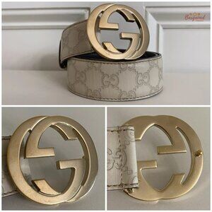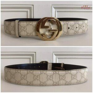 Authentic Gucci Cream Guccissima Leather Gold Interlocking G Buckle Belt 85/34