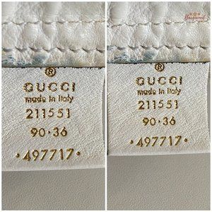 Authentic Gucci Cream Leather Gold Heart Shaped Engraved Script Logo Belt 90/36