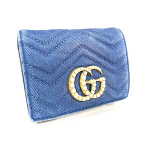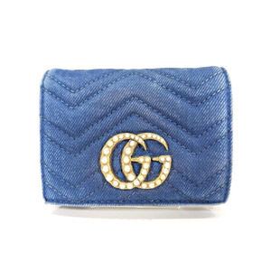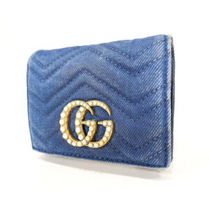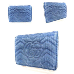 Authentic Gucci Denim Bifold Wallet GG Marmont W/Box and Dust Bag