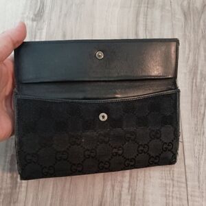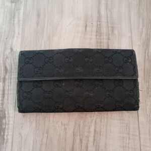 Authentic Gucci Denim Black GG Supreme Long Wallet