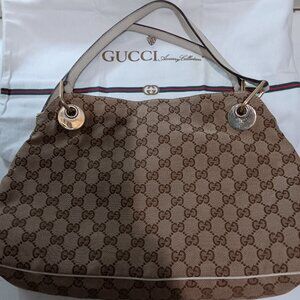 Authentic Gucci Eclipse Canvas leather trim tote Shoulder bag, Medium size