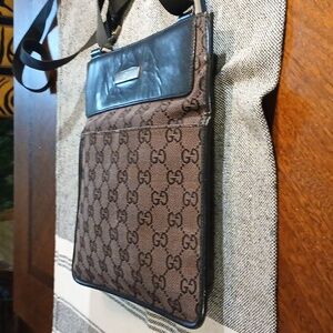 Authentic Gucci GG canvas crossbody bag in purple and black with leather trim. Features iconic GG monogram pattern, front slip pocket, and adjustable shoulder strap. This Gucci bag is authentic and is super super cute and is in good condition. Please go check out the pictures to see for yourself. If you have any questions please let me know thanks