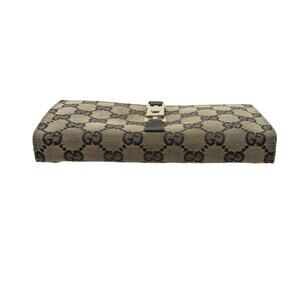 Style: Long flap wallet with signature Gucci clasp closure