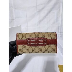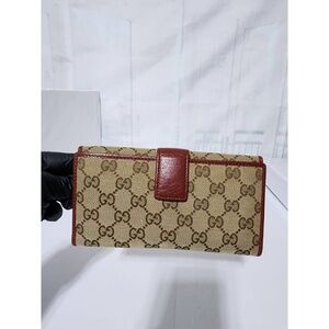 This authentic Gucci GG Canvas and Leather Continental Wallet Beige/Burgundy is in its good pre-owned condition. The exterior is clean and beautiful. The interior is clean, it has a lot of compartment and card holder. Kindly look at pictures above for all details.