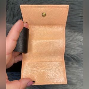Authentic Gucci GG Marmont leather key & card holder with Goldtone interlocking GG’s on front flap, snap closure, inside pocket and 6 gold tone key hooks.