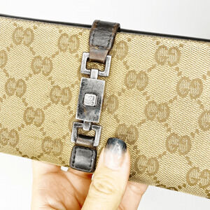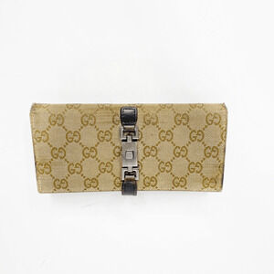 Authentic Gucci GG Monogram Logo Jackie Long Wallet canvas piston lock