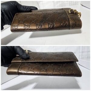 This authentic Gucci GG Signature Leather Wallet Brown is in it’s pre-owned condition. The exterior shows sign of wear to the leather, the leather shows scratches, scuffing and discoloration to it. The interior is clean but the leather in the interior shows discoloration. Kindly look at pictures above for all details.