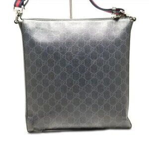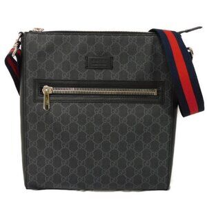 Authentic Gucci GG Supreme Large Crossbody Bag Messenger Web Canvas Black Mens