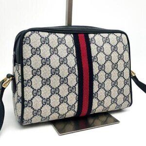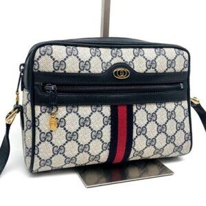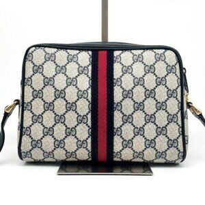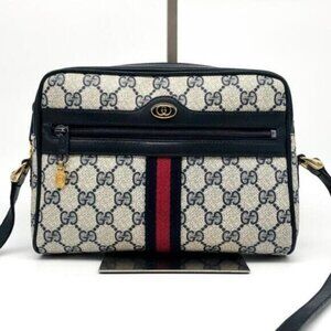 Authentic Gucci GG Supreme Navy Monogram Crossbody Sherry Canvas Shoulder Bag