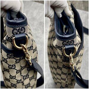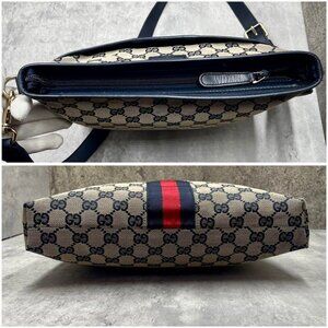 Authentic Gucci GG Supreme Ophidia Sherry Line Crossbody Bag Web Canvas Navy Tan