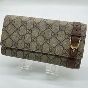 Authentic Gucci GG Supreme PVC Leather Beige Long Wallet W/Dustbag