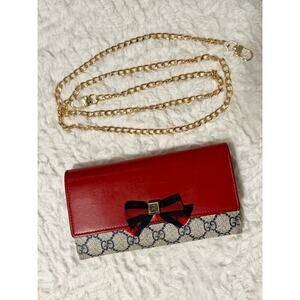 Authentic Gucci GG Supreme Web Bow Continental Wallet – Red Leather – Excellent