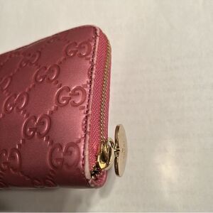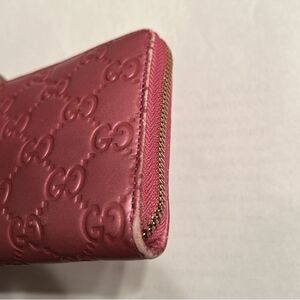 Authentic Gucci GG Signature Continental Pink Leather Wallet, Zipper Closure, 12 Credit Card Slots, Preloved ,No coin residue, Minor corner rub, No Rip.Comes with dust bag.Approx measurement Width 7.4", Height 4''