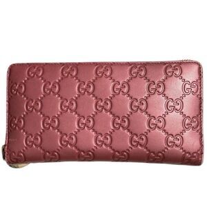 Authentic Gucci GG Signature Continental Pink Leather Zip Around Wallet