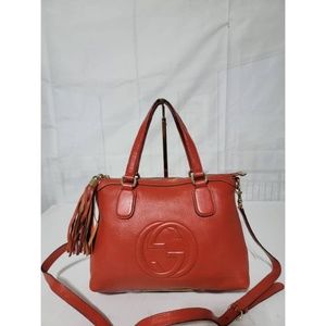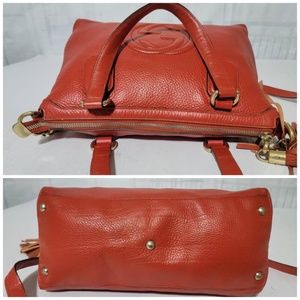 Authentic Gucci Grained Leather Soho Working Satchel Bag Red