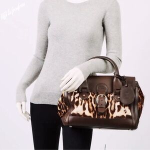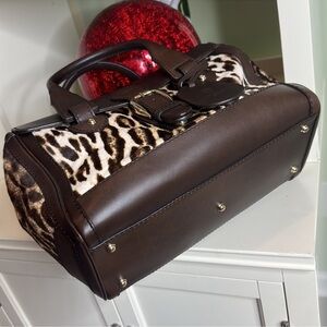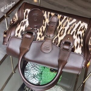 In great used condition. Dimensions 13 by 8 by 6 inches. Classic, Stylish handbag with leopard print and brown leather accents. Features a buckle and tag detail. Comes with dust bag. LOVE TO SEE MORE DESIGNER ITEMS? CHECK THE CLOSET FOR MORE 🔥🔥
