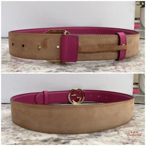 Authentic Gucci Hot Pink Calfskin Leather Gold Interlocking G Buckle Belt 80/32
