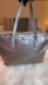 Authentic GUCCI Imprime GG Monogram Large Zippered Shopping Tote Bag. This chic tote is finely crafted of Gucci GG monogram Imprime coated canvas. It features cowhide leather trim and strap top handles in metallic silver. The top zipper opens to a fabric interior with zipper and patch pockets.