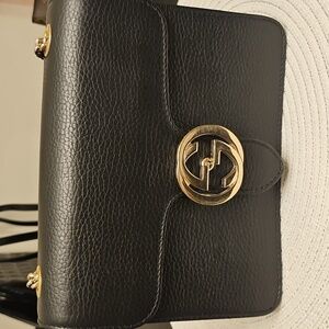 Authentic Gucci Interlock Black Crossbody Bag with Gold Accents
