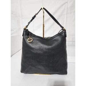 This authentic Gucci Interlocking G Hobo Bag Black is in its pre-owned condition. The exterior leather is clean. The interior is clean but shows some rubbing it. Gold hardware shows some rubbing to it. Kindly look at pictures above for all details.