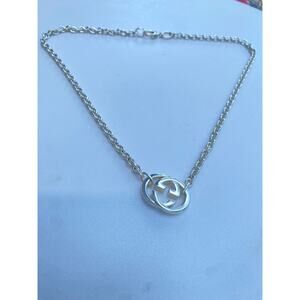 Authentic Gucci Interlocking GG Logo Necklace โ 16โ Sterling Silver