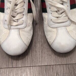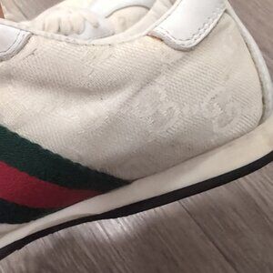 Stylish Gucci kids shoes. White with iconic red and green stripes. Perfect for any occasion.Pre owned in good condition. little dust marks on the shoes but not very noticeable.