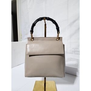 Authentic Gucci Leather Bamboo Flap Top Handle Bag Beige