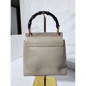 This authentic Gucci Leather Bamboo Flap Top Handle Bag Beige is in its pre-owned condition. The exterior is clean. Interior is clean. There are little scratches to the exterior leather, it is not so obvious. Gold hardware.