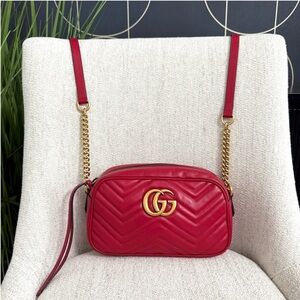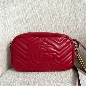 Authentic Gucci Marmont crossbody bag red leather gold GG